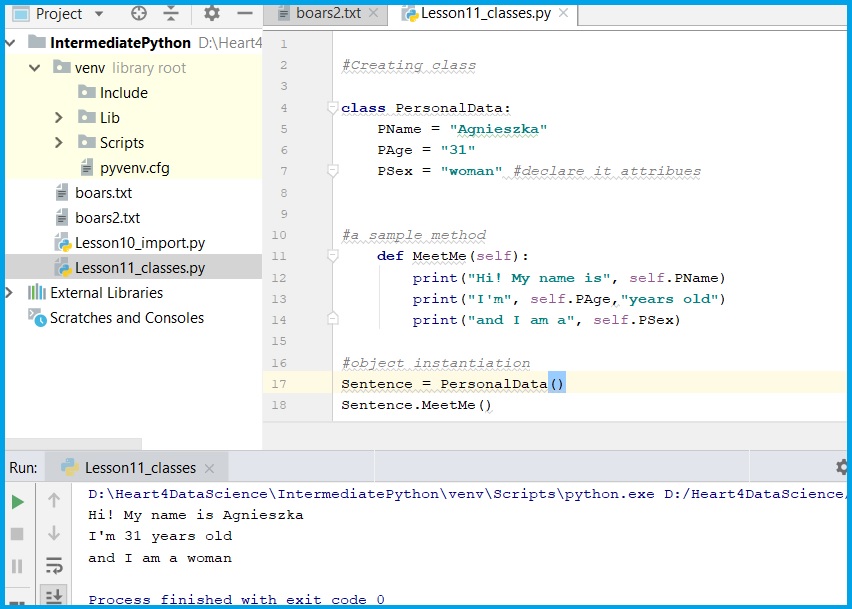 And class is kind of an object constructor. Writing own classes means, that you reach out a high level of programming.