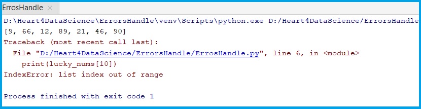 When we meet an error or an exception while our code is running, Python will normally stop and generate an error message in red.