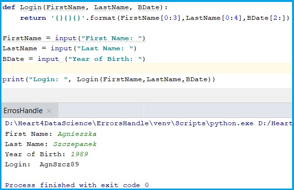 return '{}{}{}'.format(FirstName[0:3],LastName[0:4],BDate[2:])