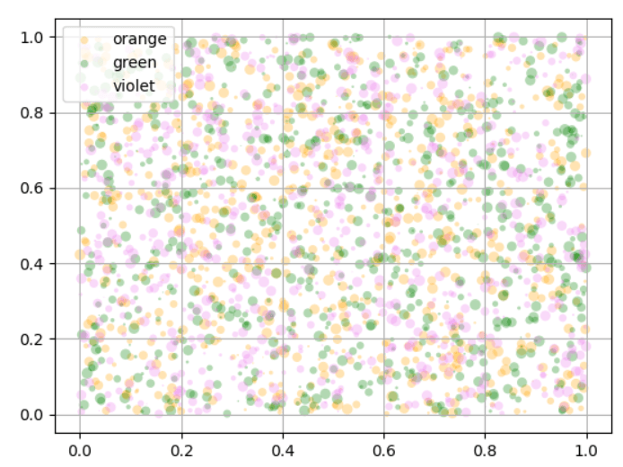ax.scatter(x, y, c=colors, s=scale, label=colors,