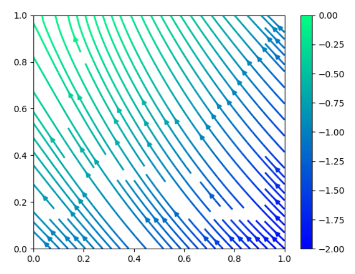 strm = ax.streamplot(X, Y, x, y, color=x, linewidth=2,