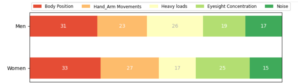 Employed persons by gender and groups of workplace factors adverse effects on physical health