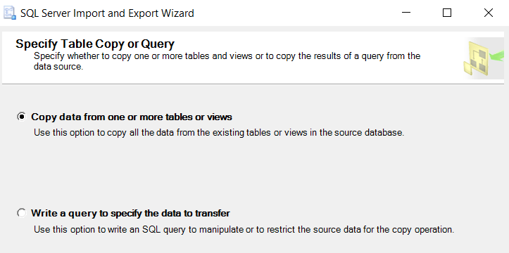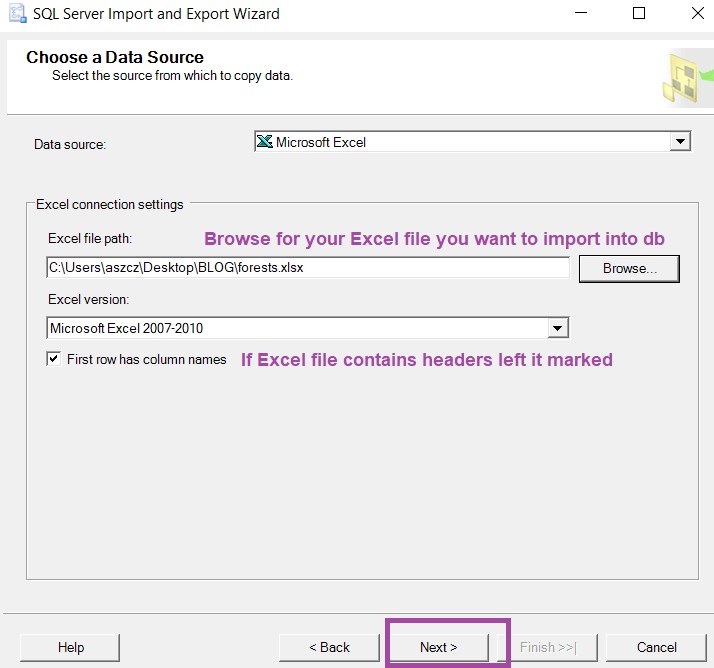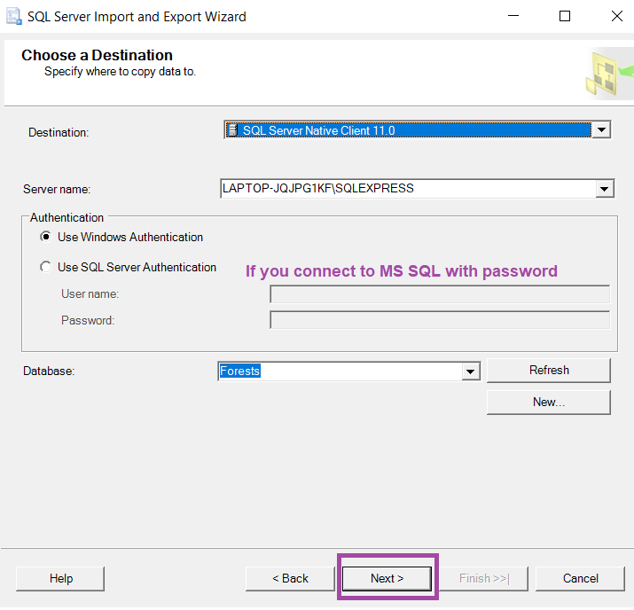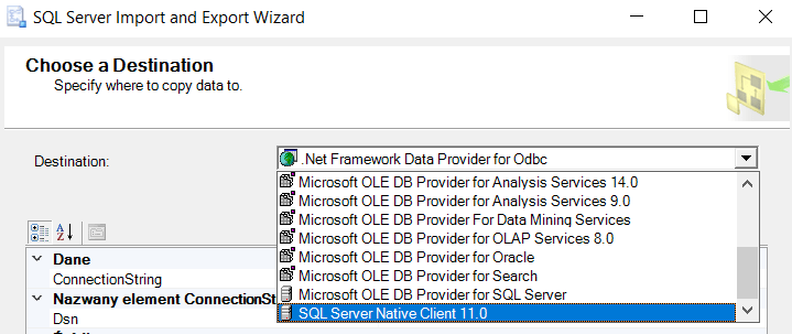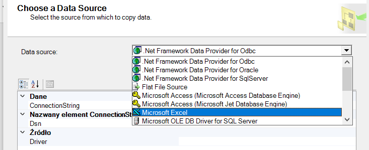 2. Then we need to choose data source, this time it will be our SQL Server, so the program that is currently in use.