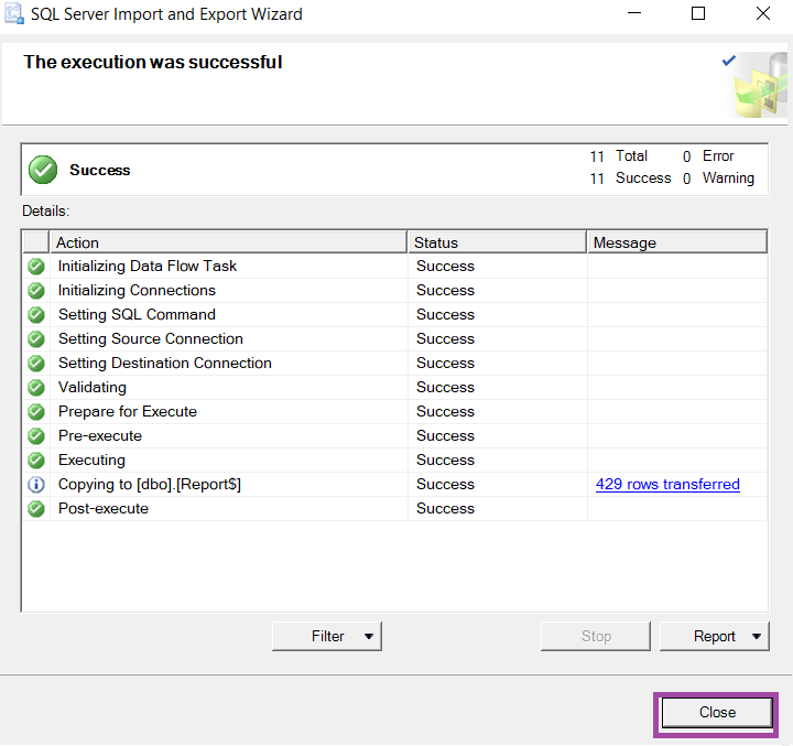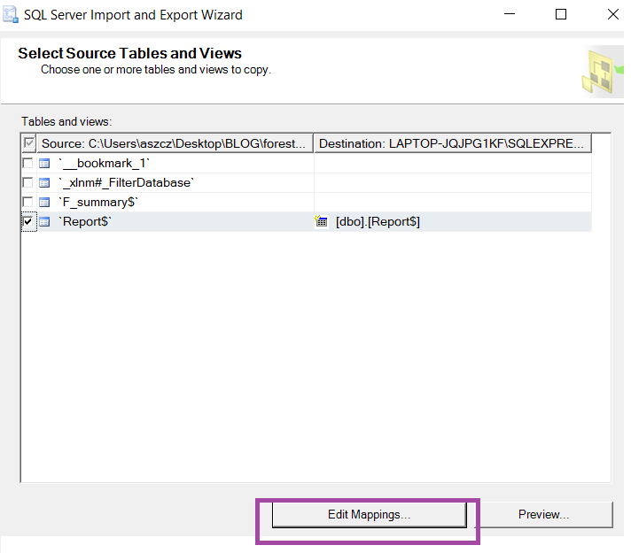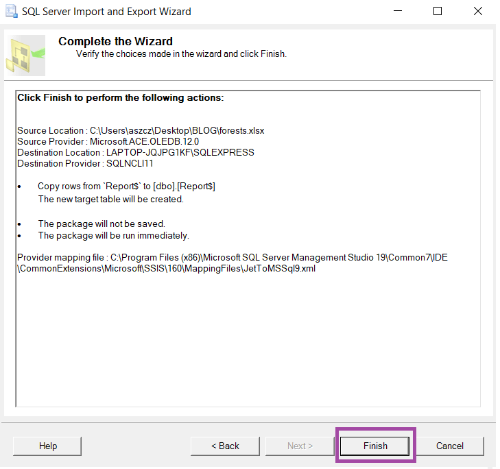 5. SQL will show us information about data types fails, but there’s no need to make any modifications, just click next.