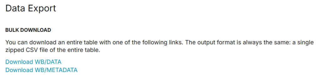 result for open data: World Bank Data