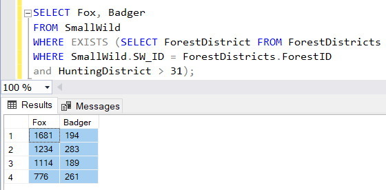 WHERE SmallWild.SW_ID = ForestDistricts.ForestID